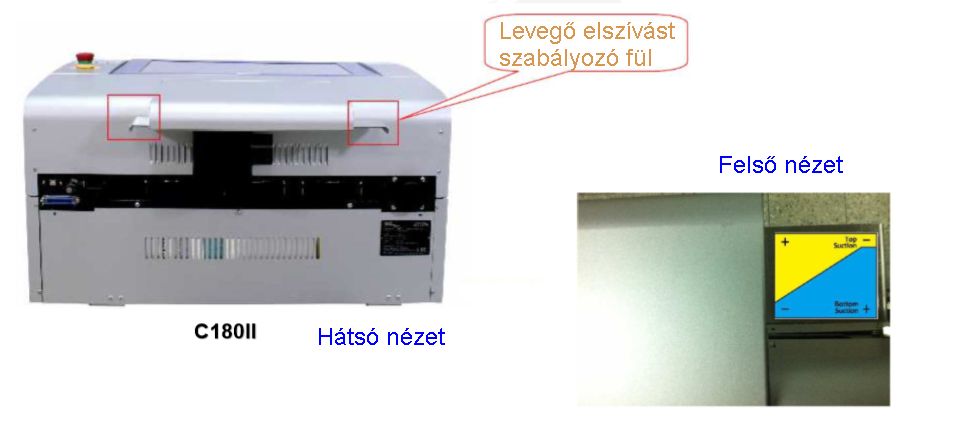 - A munkafelület tisztítását helyi légbefúvás biztosítja